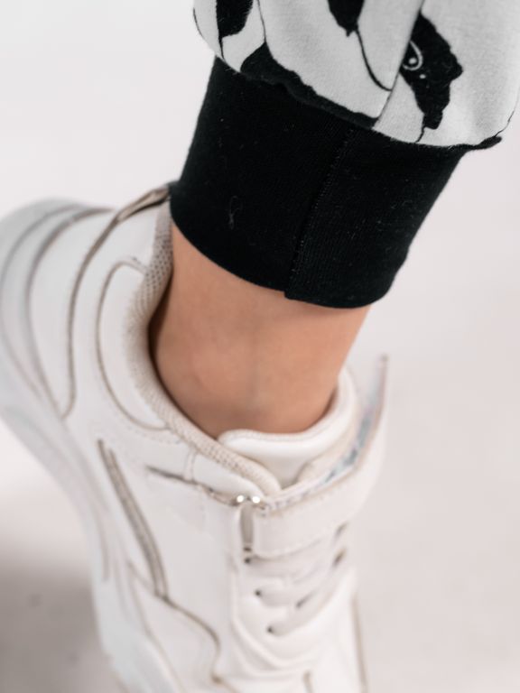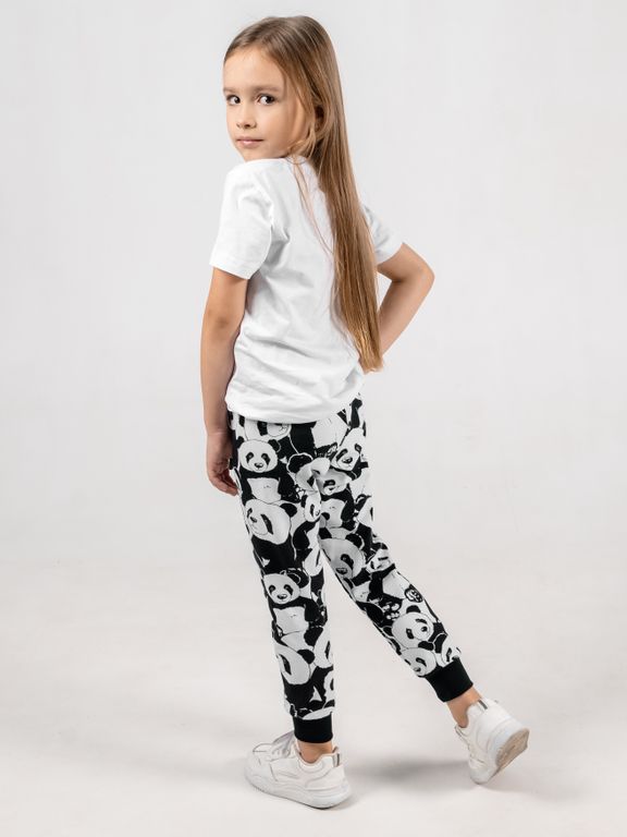 Мягкие брюки-джоггеры на резинке с принтом. Данная модель - универсальна и практична. Крой слегка зауженный к низу (брючины с манжетами), изделие без карманов. Пояс на резинке без завязок. Подойдут для занятий физкультурой в школе, поездок и активных игр, занятий спортом и прогулок на свежем воздухе